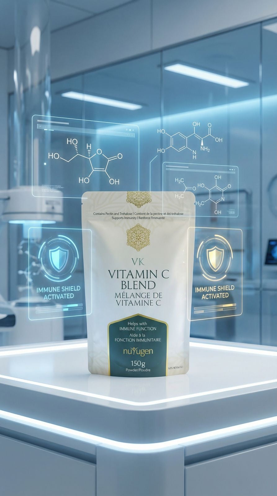 VK is an immune boosting Vitamin C formula that contains D-glucuronolactone that assists in the body’s formation of Vitamin C and the detoxification of the liver, and a specially modified form of citrus pectin, that helps optimize the human gastrointestinal microbiome and prevent tissue fibrosis.